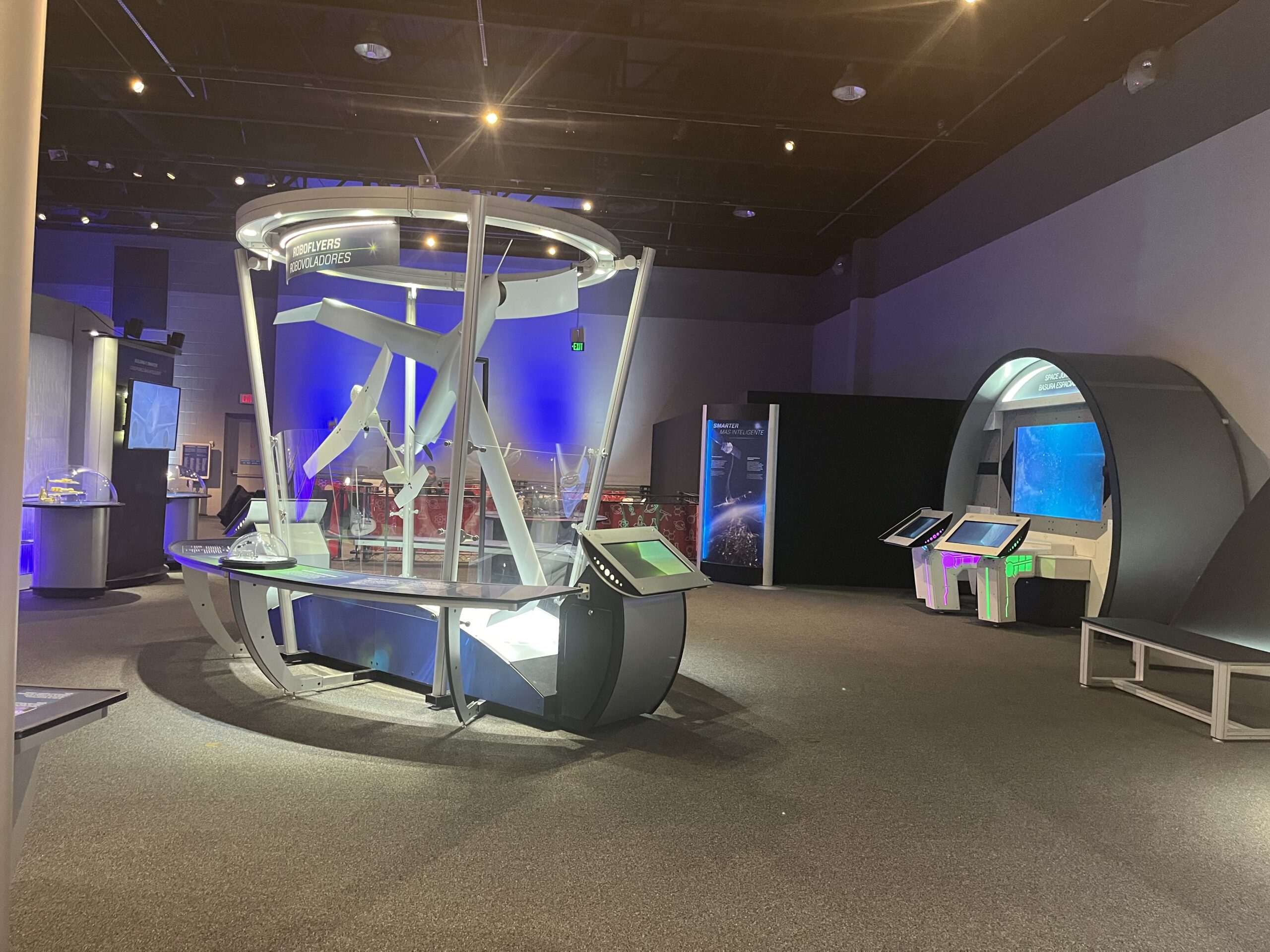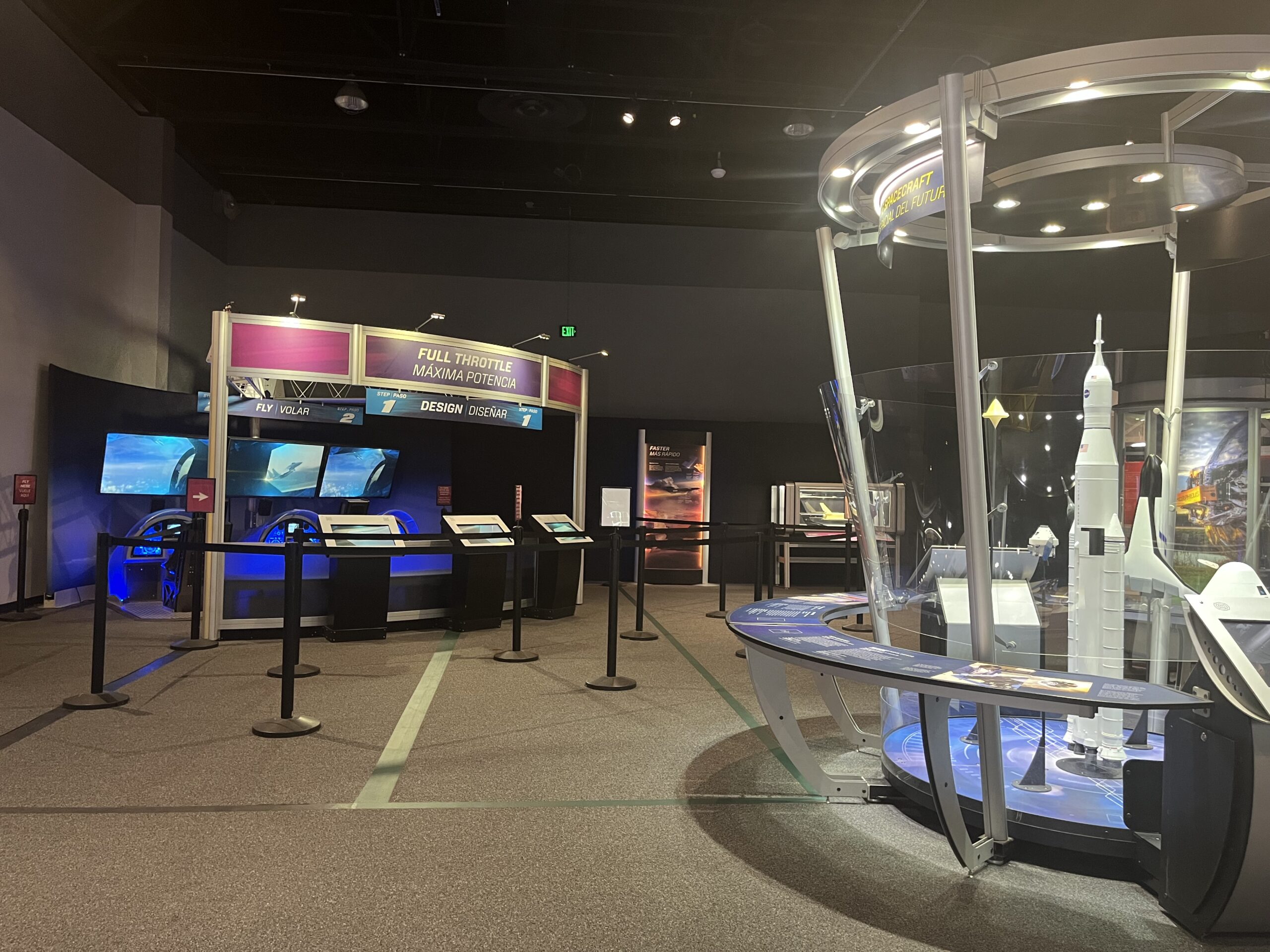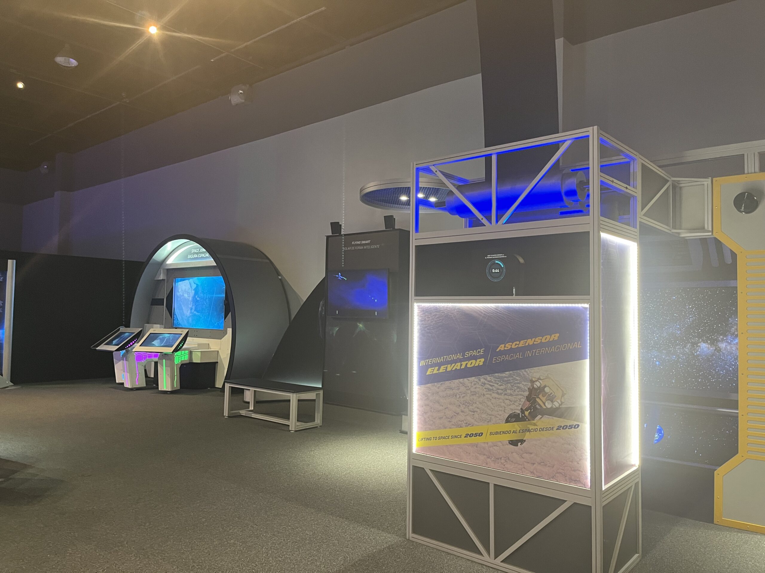 The 6,000 sq. ft. exhibition hall includes five galleries. Some of the exciting experiences offered include a simulated space elevator, a virtual high-speed jet race and a group flying experience.